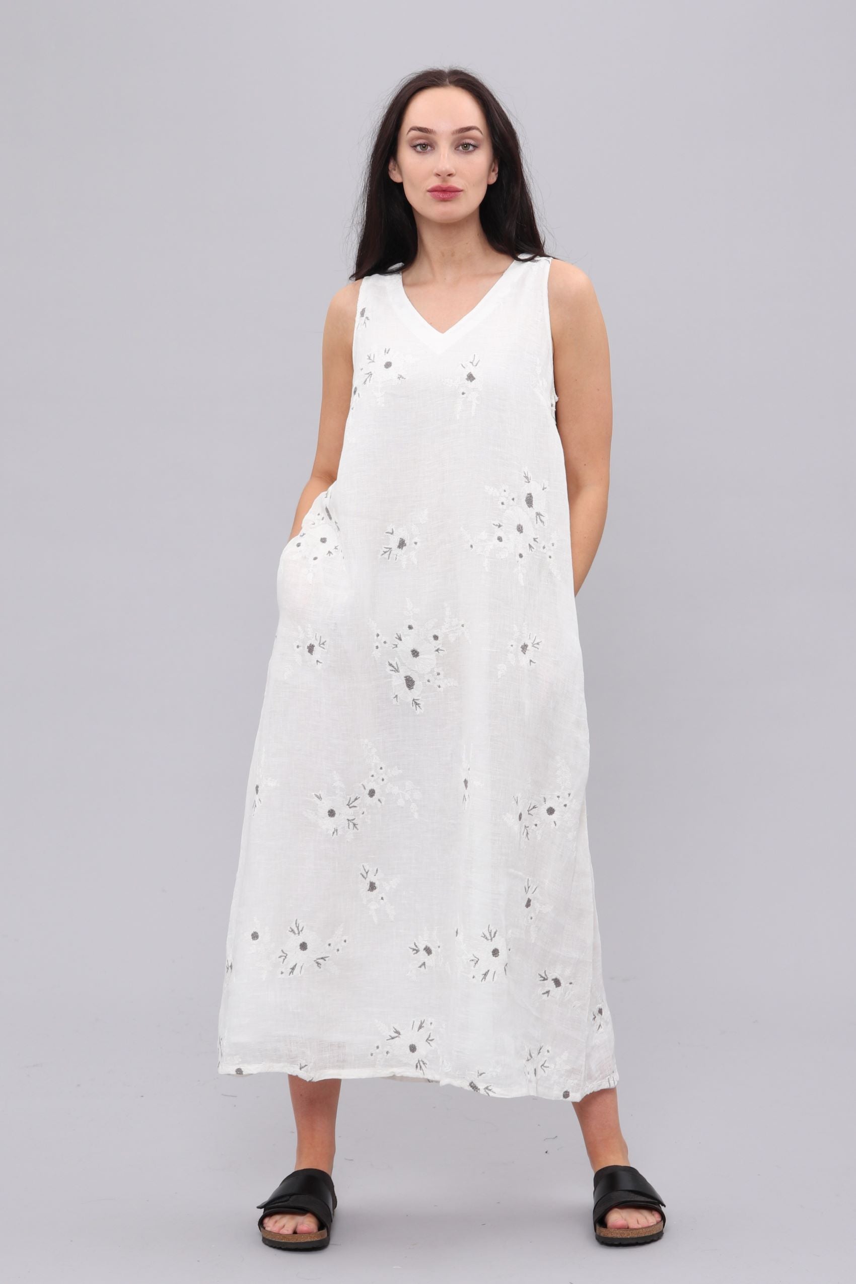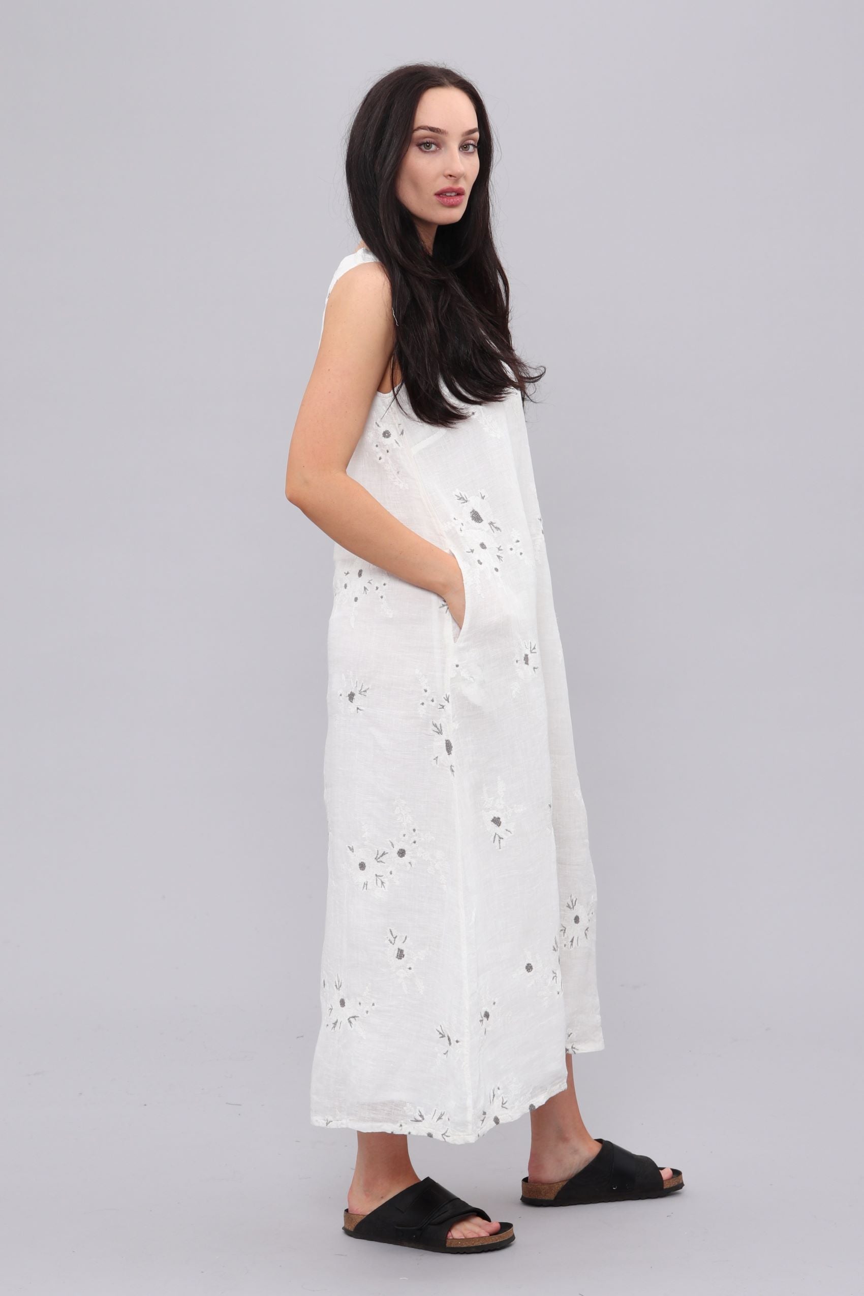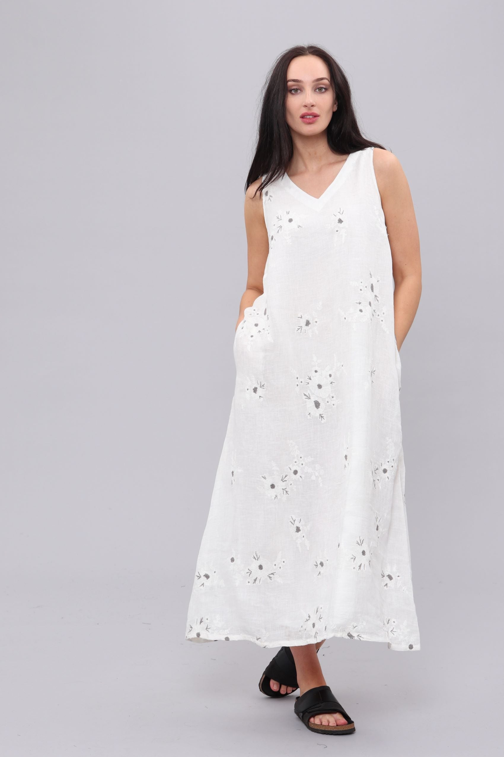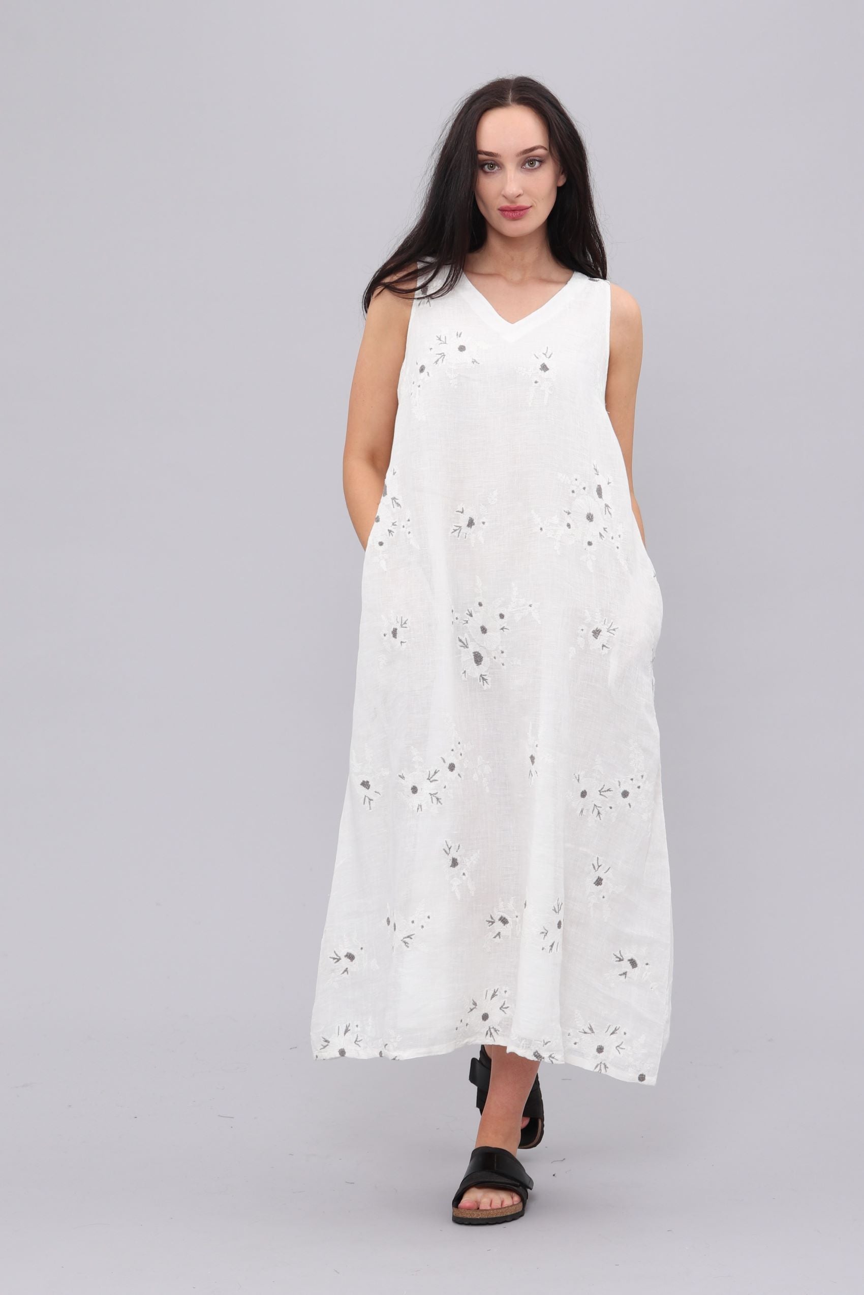 100% Organic linen, slight A-line maxi dress,