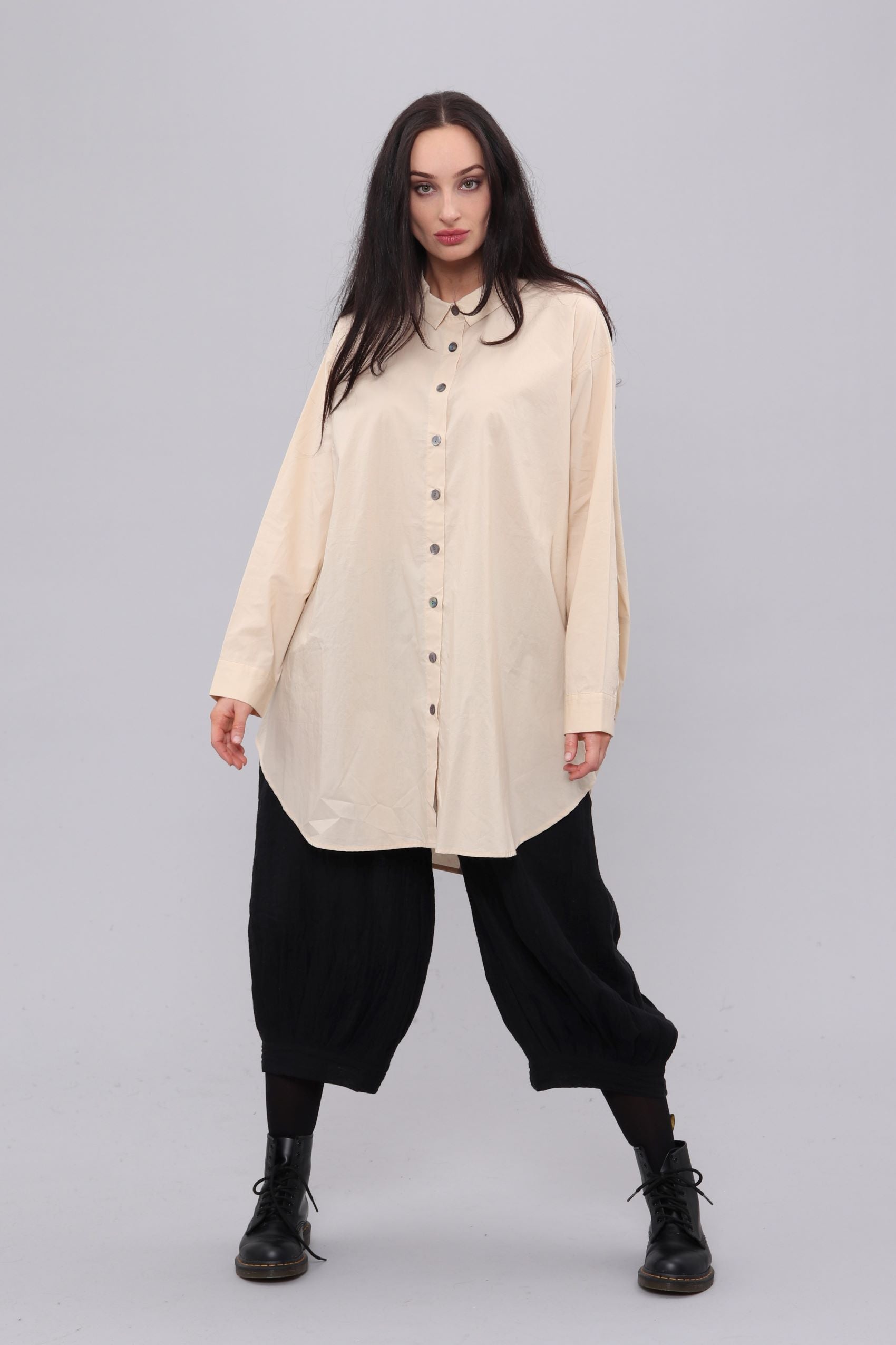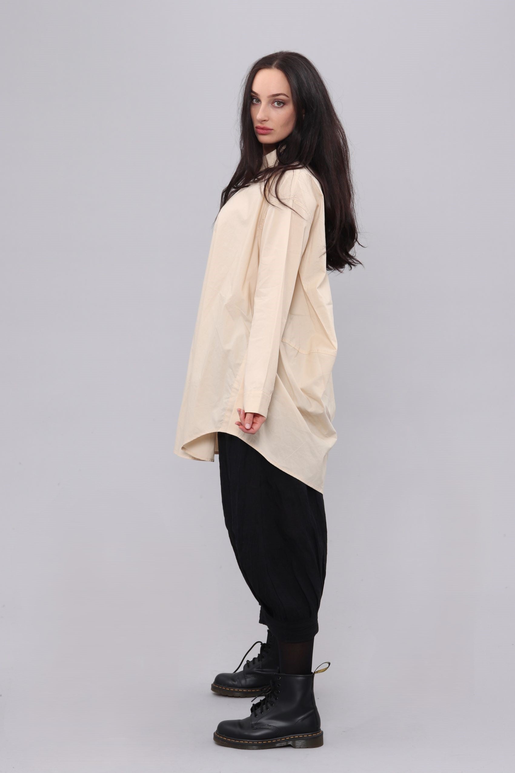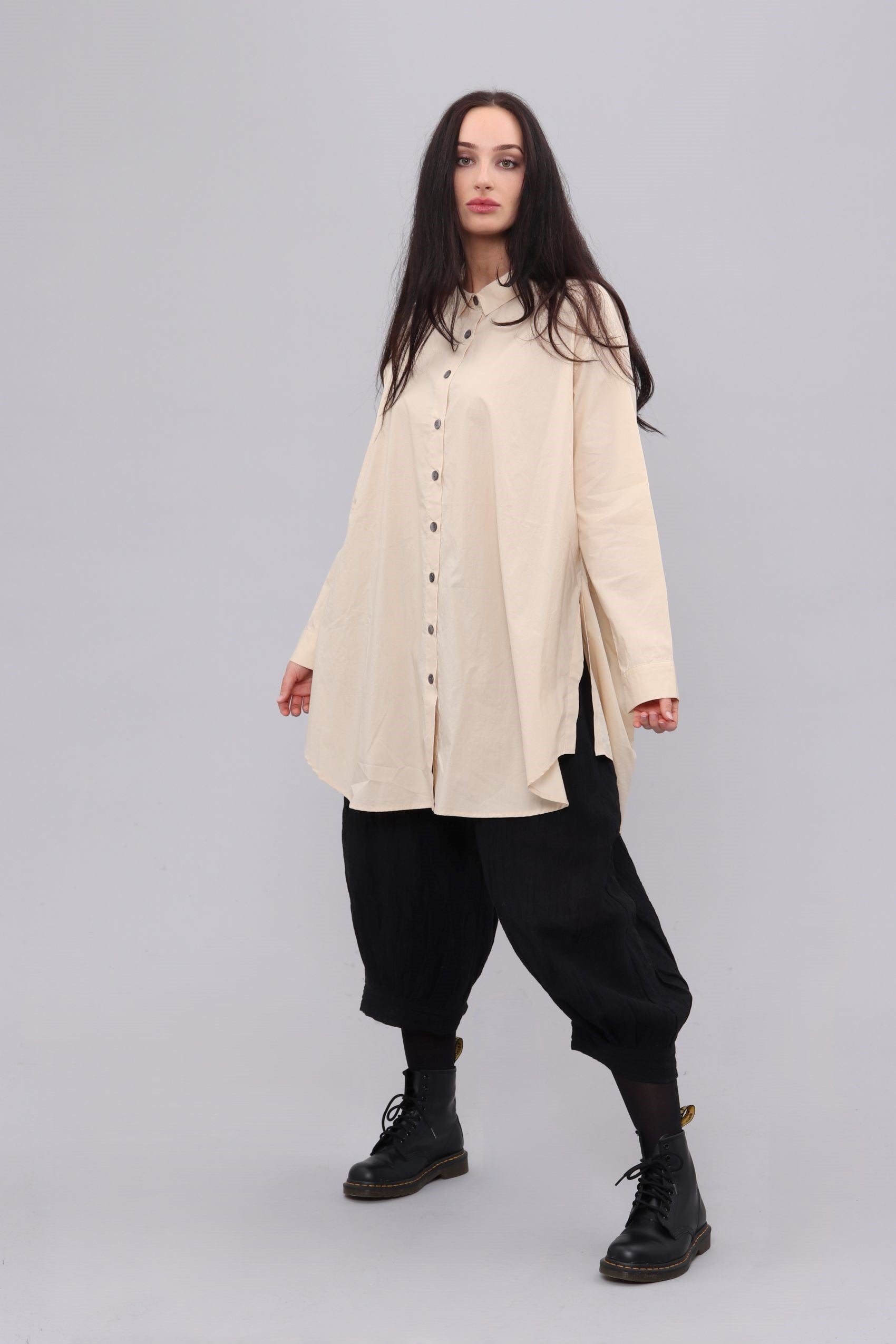 100% Cotton shirt with side splits and low back.