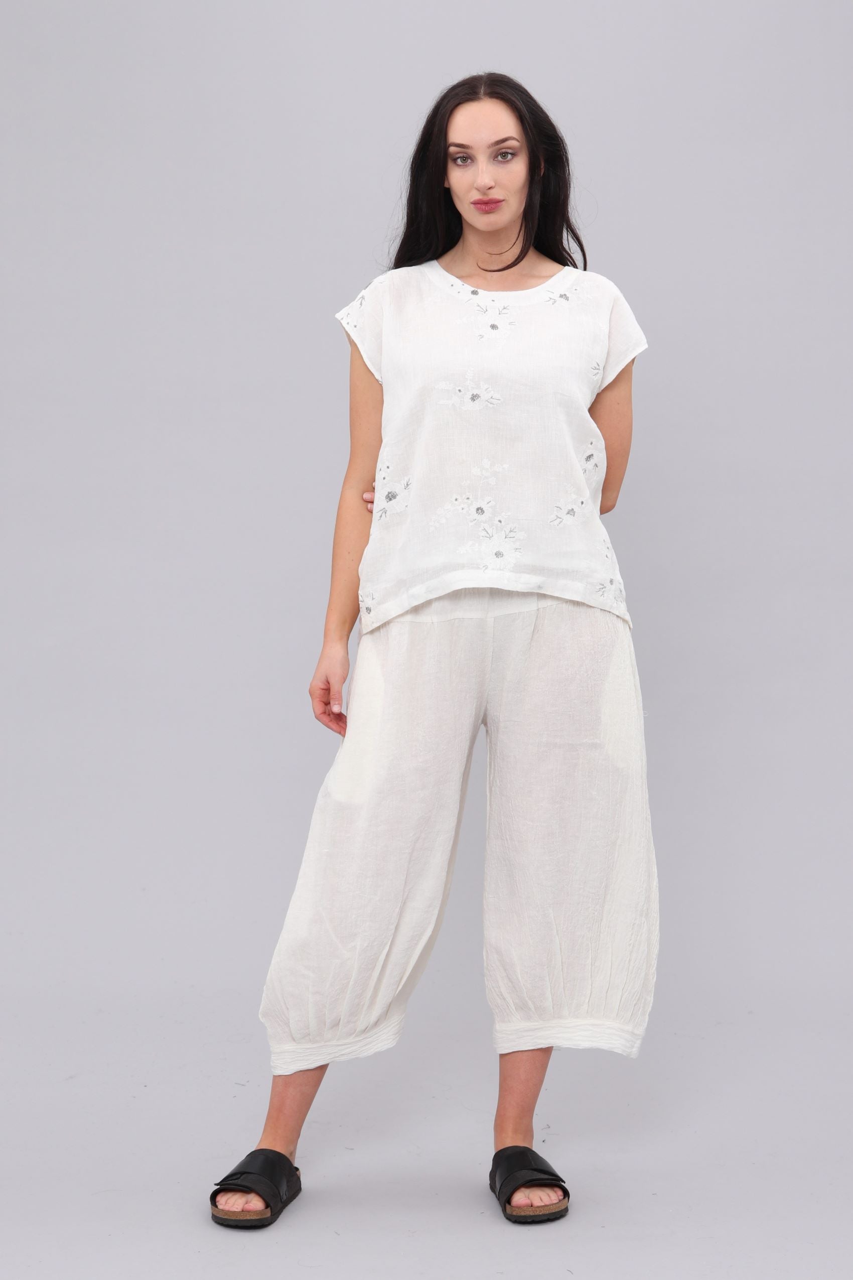 100% linen embroidered top
